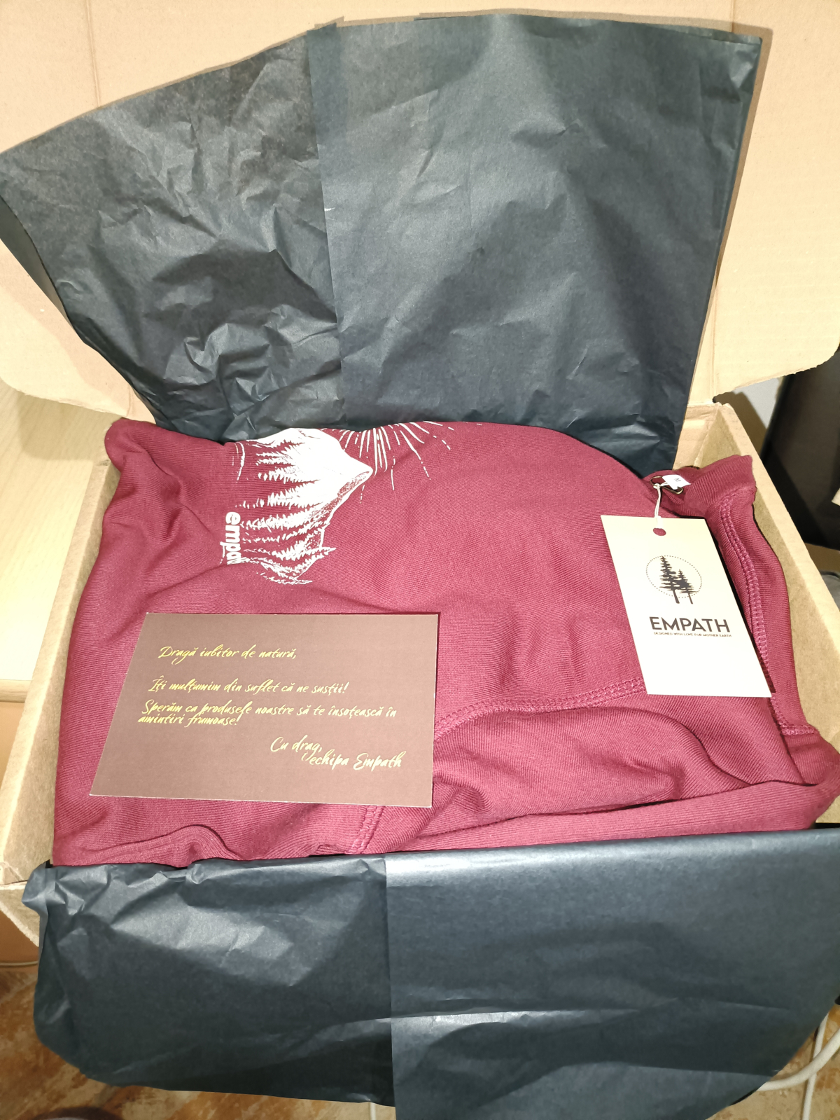 Buna ziua.Bluza e conform așteptărilor mele,nu sunt la prima comanda,deci eram convins de calitatea materialului și cu siguranță voi revenii și cu alte comenzi.Multumesc echipei Empath!!