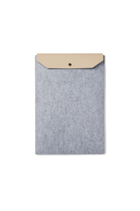 Laptop sleeve designed with a sleek and clean aesthetic, using GRS recycled felt with a melange effect. This sleeve effectively protects the computer from shocks and moisture. It features a PU opening flap for easy access and added elegance.
