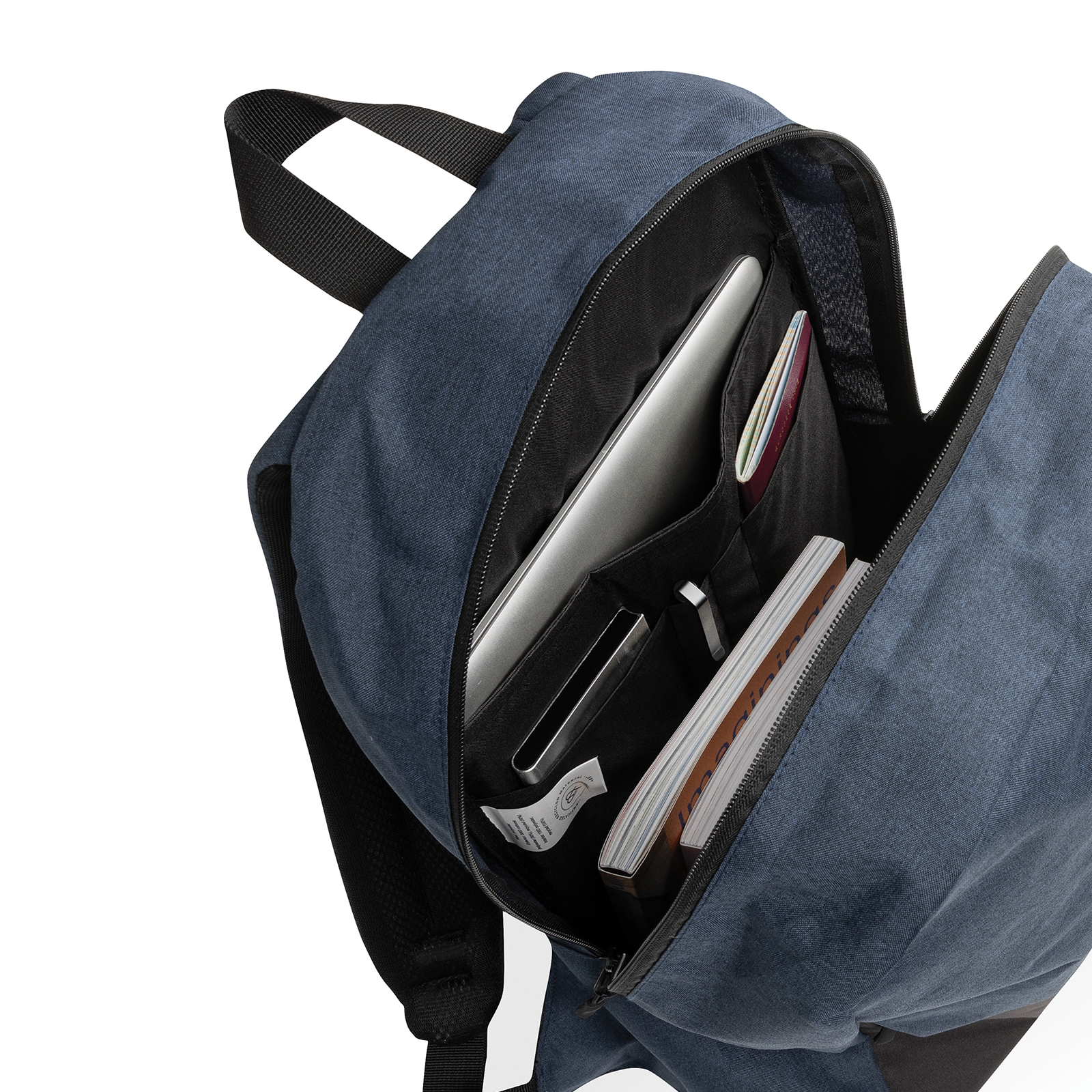 - Buzunare: Buzunare de mărime pașaport și bucle pentru pixuri pentru organizare